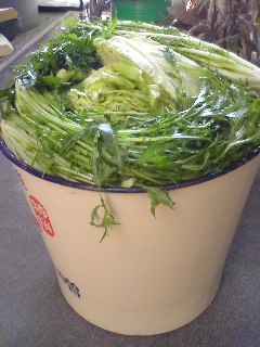 味付けは、いつもいい加減に「なりゆき」でしているので、こういうときにつぶしが効かない。鍋で調味料液(醤油と味噌と練りごま、砂糖酒など)を作り、少し薄めにしておいた。←これが大事だった。