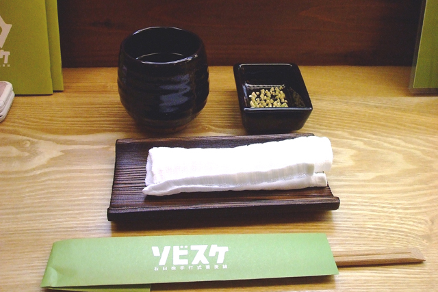 そうそう、席に座ると「そば茶」「蕎麦の実」が出てくる。