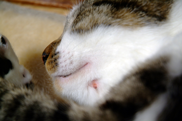 よくよく観察していると、くつろいでるやまささに、ケンカをふっかけてのど元に噛みついてる、そら。犯人は、こいつか...?