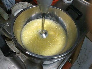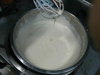 泡立て器を持ち上げ円を描いても跡がすぐに消えないぐらい…こんなもんだろ。