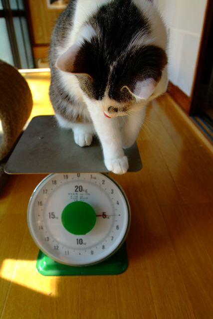 やっぱりそらは、全然体重計に乗ってくれない...それが普通と言えば、そうなんだろうけど。