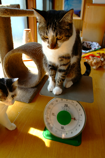 T「今月大和もささも、家に来て1年だよ。正確には21日だけど〜。そのときは、3キロ前後だったんだよねぇ。まあ、これが理想体重かねぇ〜(^^)」