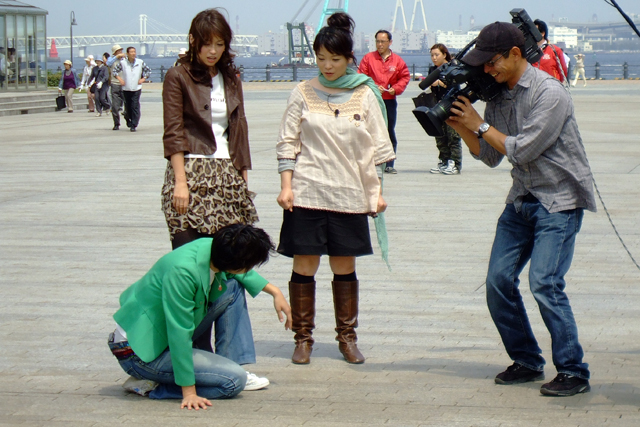 お昼を食べてレンガ倉庫を出ると撮影をしてる集団が。