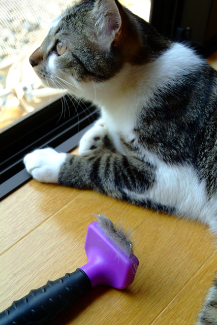 なにをされるのか、不安なのかしきりにニオイを嗅いでいたけれど、2、3回やると温和しくなってくれる。やはり大和もお尻付近がモハモハ取れた。