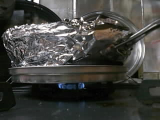 弱火に網を敷いて、(これでも均一な熱が回らないと思ったので、餅網にしてみた)40分だそうだ。。。